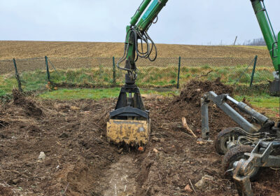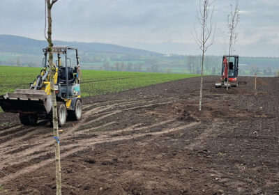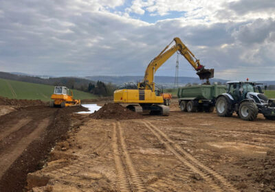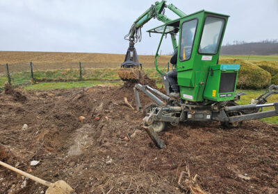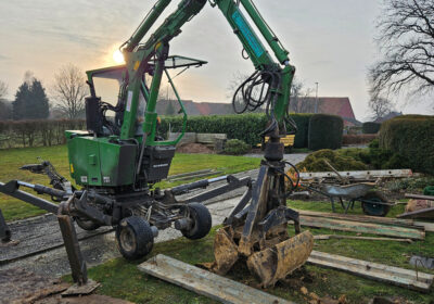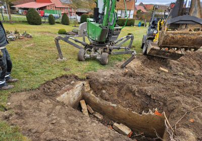 Grabaushübe erledigen wir – mit Unterstützung der Kommunaldienst Schünemann GmbH – mit unserem Dreiradbagger. Zum Schutz der Umfläche und des Rasens legen wir selbstverständlich stabile, befahrbare Bleche aus. Wir können Wegbreiten ab 83 cm befahren.