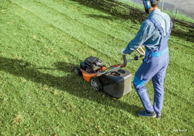 Mit unseren Frontrasenmähern sind wir auch zwischen den Grabreihen extrem wendig – wir mähen nach Wunsch mit oder ohne Korb.